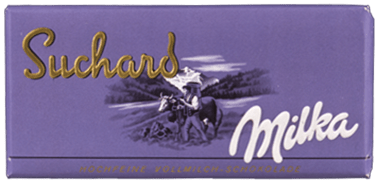 Nieuwe verpakking! De Milka-verpakking verandert weer: het logo is nu wit, de achtergrond is paars.