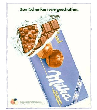 In 1972 werd de MILKA koe gecreëerd en in 1973 wordt ze de centrale figuur voor elke MILKA reclame.