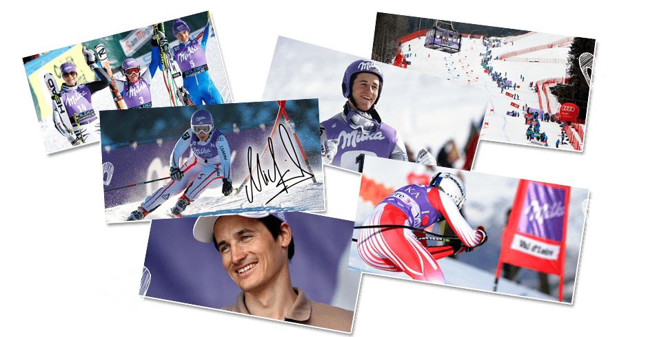 Milka wordt skisponsor hier: Alpen, Zwitserland: De opblaasbare Milka-koe verschijnt voor het eerst op de FIS Alpin Cup in Lienz. Dat maakte Milka tot een van de bekendste sportsponsors.